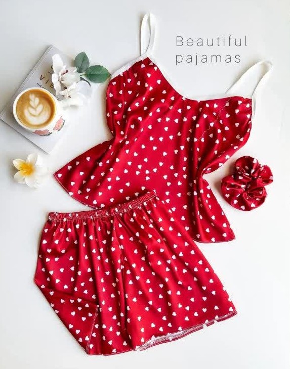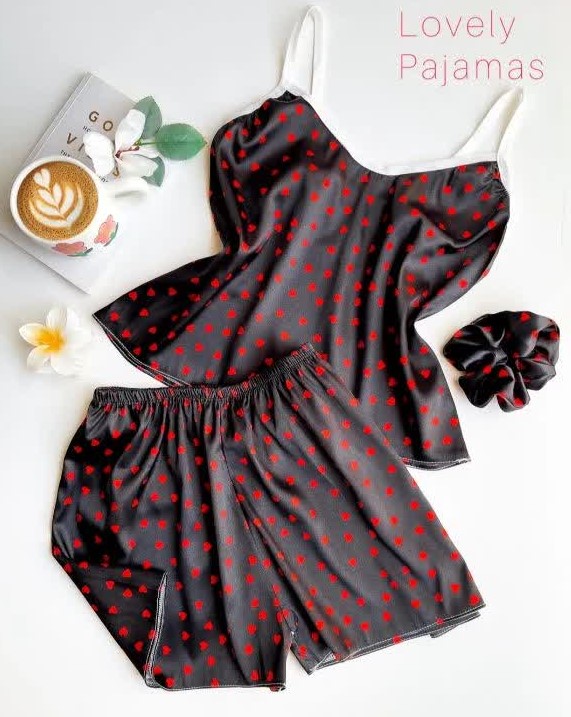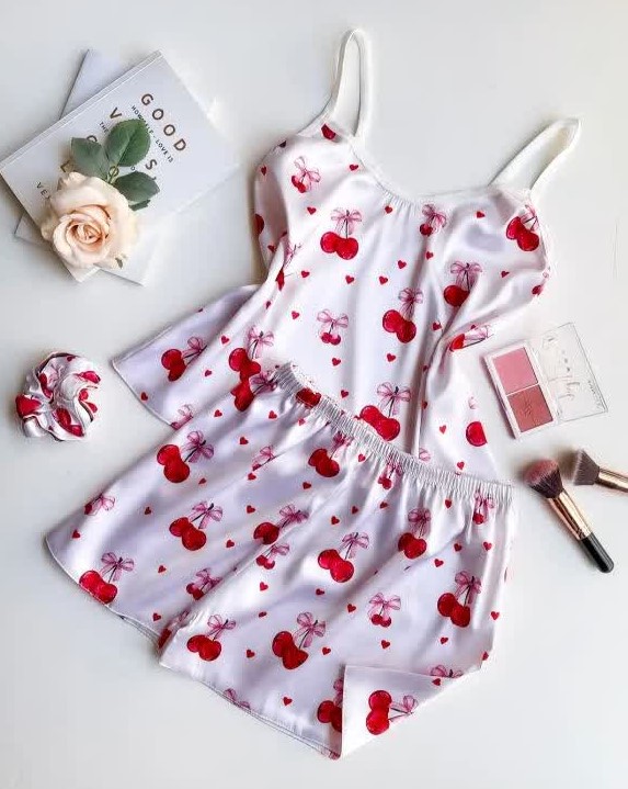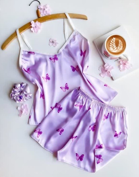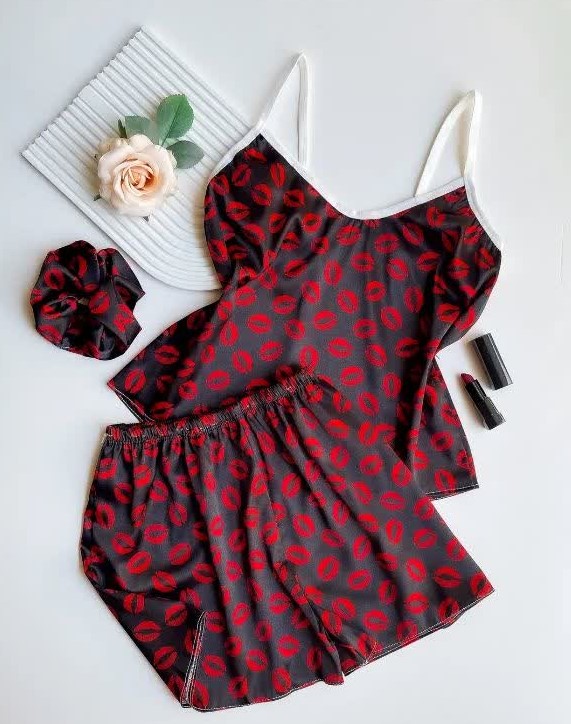 ست تاپ و شورتک ساتن همراه با کش مو . طرح های متنوع که هر طرح تک رنگ میباشد . ساتن لطیف و راحت . دوخت تمیز و با کیفیت